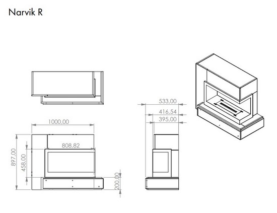 Glow Fire Ethanol-Kamin Narvik weiß, rechts offen – die Ausstattung: