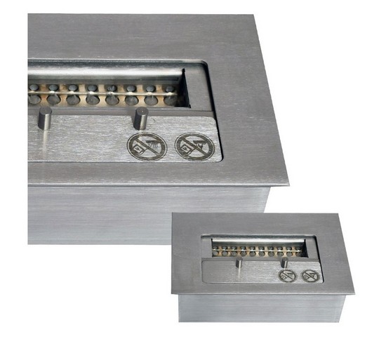Der Ethanolkamineinsatz Glow Fire BIO Burner 24 ist aus hochwertigem Edelstahl gefertigt mit einem Doppelbrennkammer-System. Die Absorptionsfunktion und der Auslaufschutz garantieren ein sicheres Flammenspiel drinnen und draußen. Zudem erlaubt es der Überhang der oberen Deckplatte den BIO Burner 24 in Aussparrungen einzulassen.