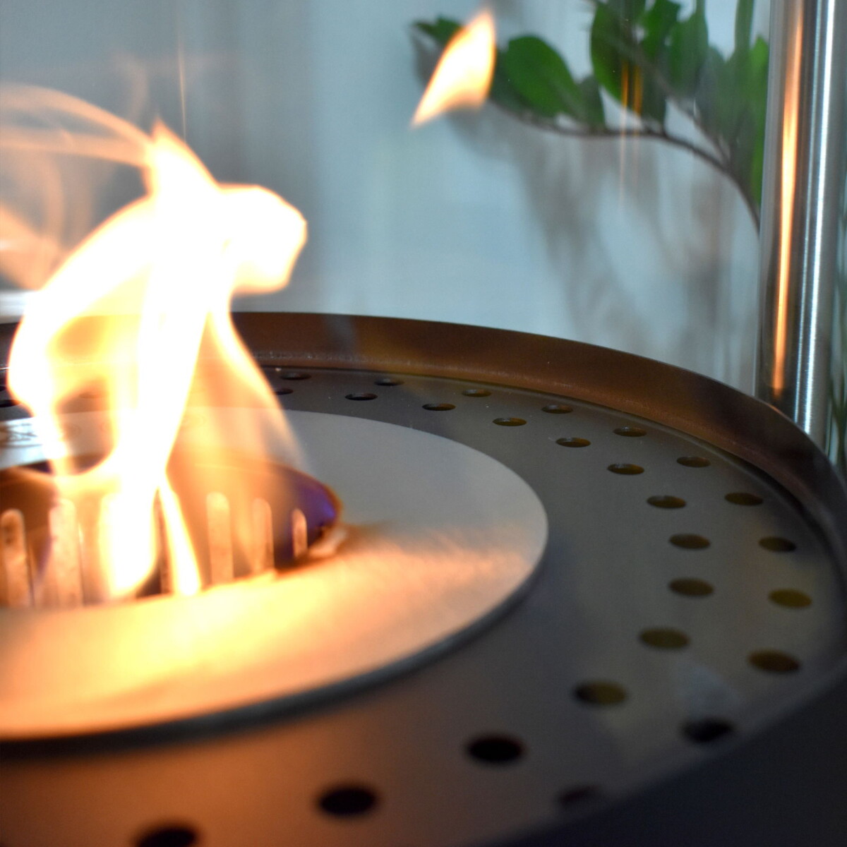 Der Glow Fire Visyb vereint rafiniertes Design mit den höchsten Sicherheitsstandards. Der Ethanolkamin zaubert Behaglichkeit und wohlige Wärme in Ihren Wohnbereich und lässt keine Wünsche offen. Das ansprechende Design mit der runden Glasscheibe ermöglicht das Betrachten des Flammenspiels von allen Seiten. Zum Einsetzen und Löschen des befüllten Sicherheitsbrenners wird ein extra langer Löschstab mitgeliefert. Der Lieferumfang umfasst außerdem ein Stabfeuerzeug, welches bis auf 75 cm ausziehbar ist. Dies erleichert das Entzünden des befüllten Brenners.