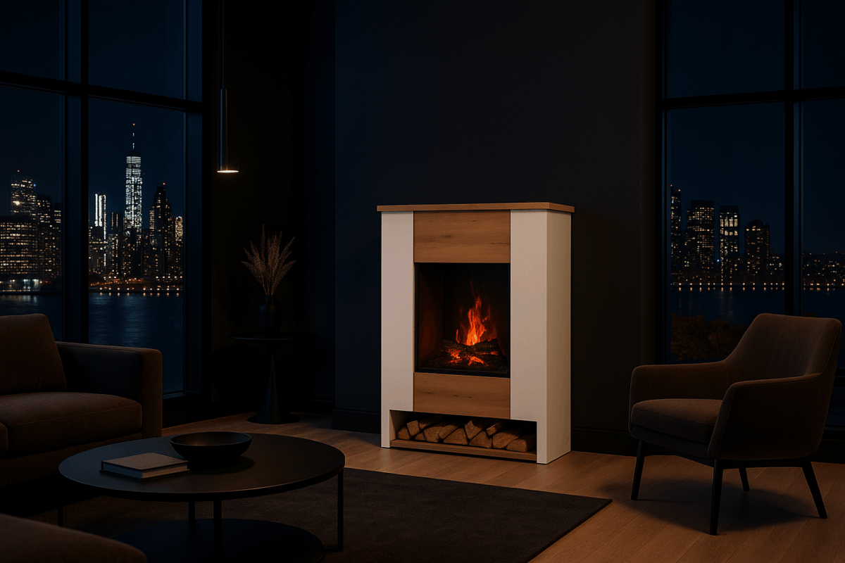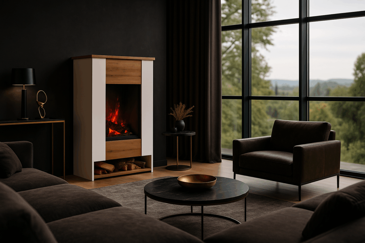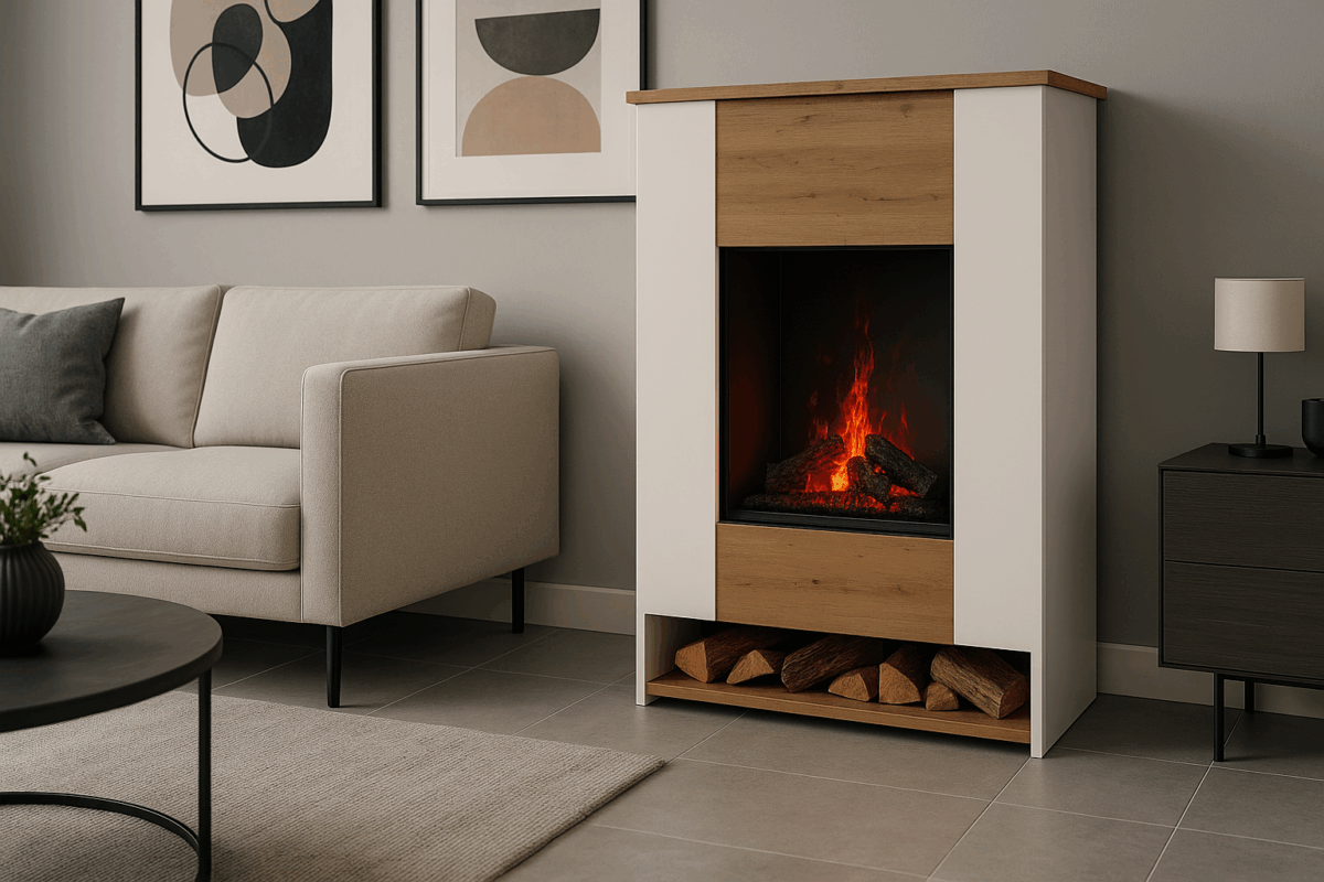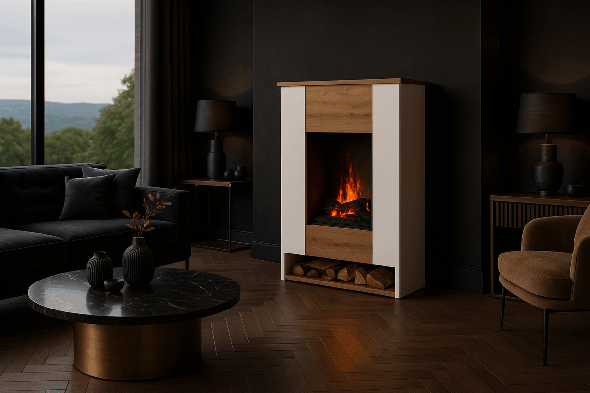 Aerzener Elektrokamin Aachen im Holzlook – Modernes Design trifft echte Wohlfühlatmosphäre