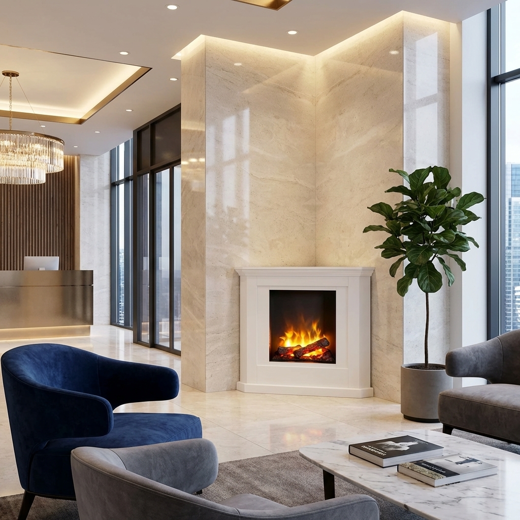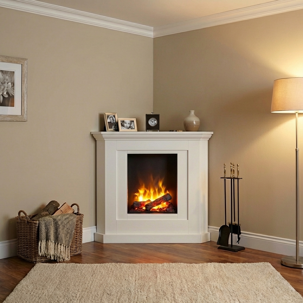 Der Aerzener Elektro-Eckkamin Alborg bietet bequeme Kaminromantik vom Feinsten