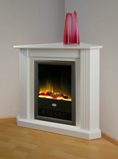 Aerzener Elektro-Eckkamin Bornholm in weiß – Eckmodell mit Optiflame-Technik