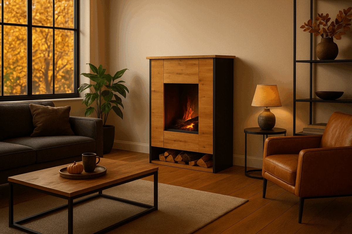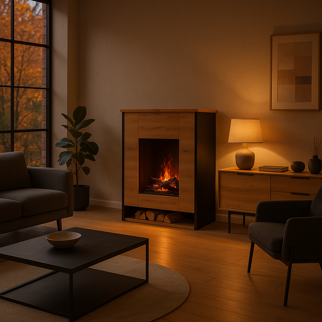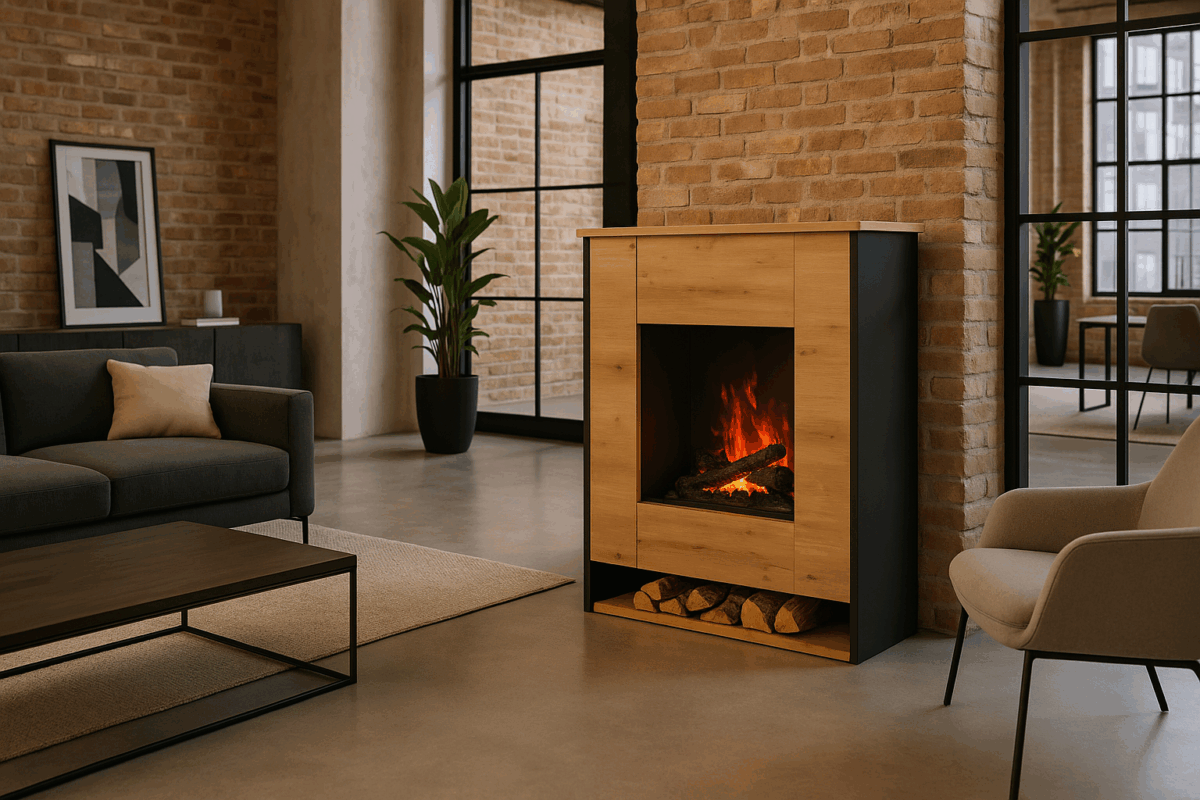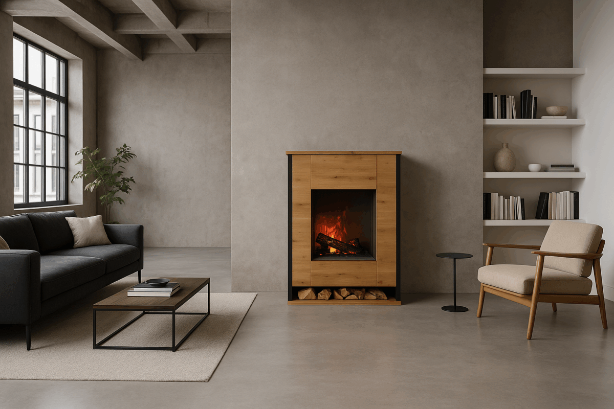 Aerzener Elektrokamin Meran im Holzlook – Modernes Design trifft echte Wohlfühlatmosphäre